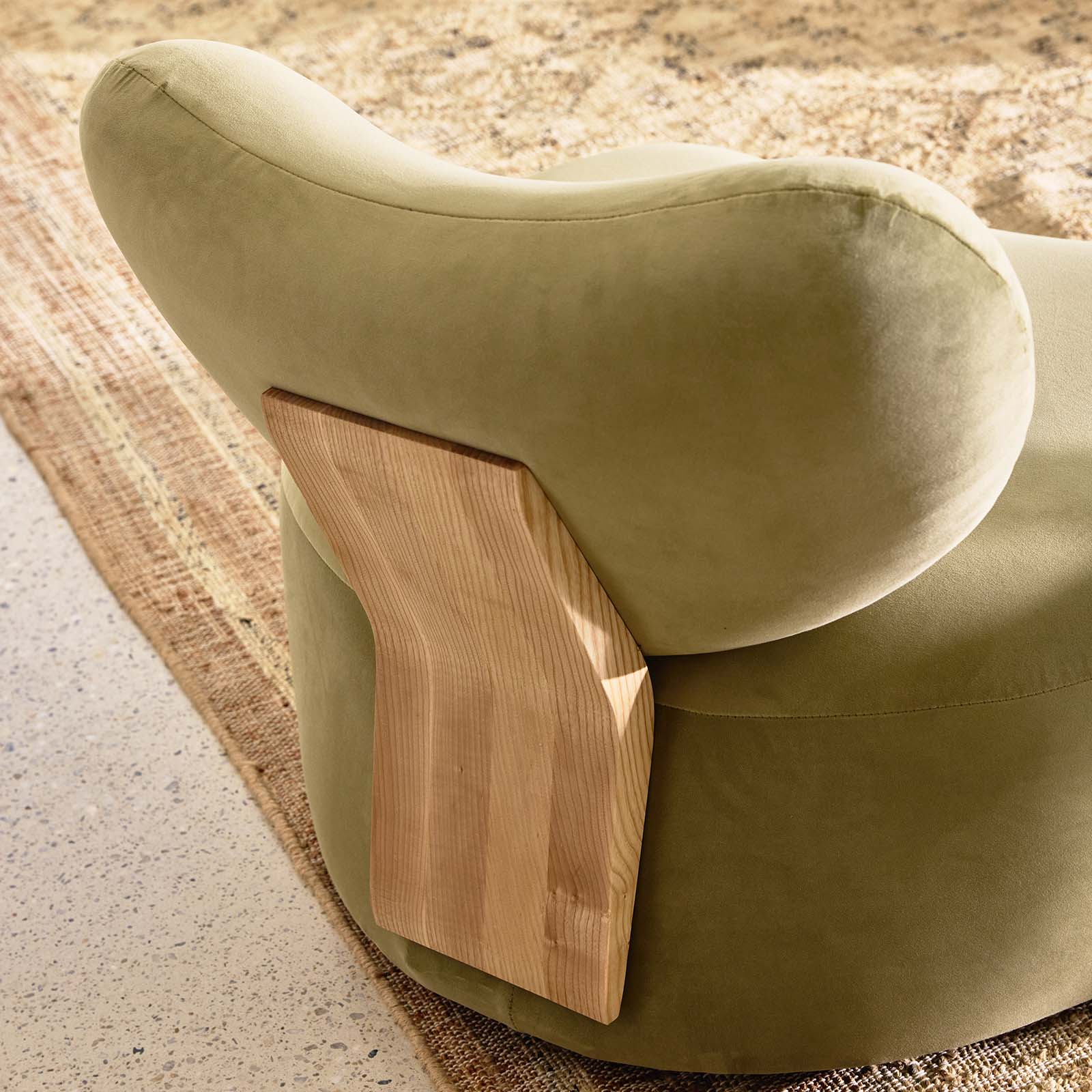 This room showcases the Soho Modular Sofa, paired seamlessly with two Almos Swivel Chairs in Sage—their fluid silhouettes echo the sofa’s curves and reflect the soft architectural lines of the home. These sculptural pieces bring a harmonious rhythm to the space, thoughtfully designed to make an impact in both residential and commercial settings.