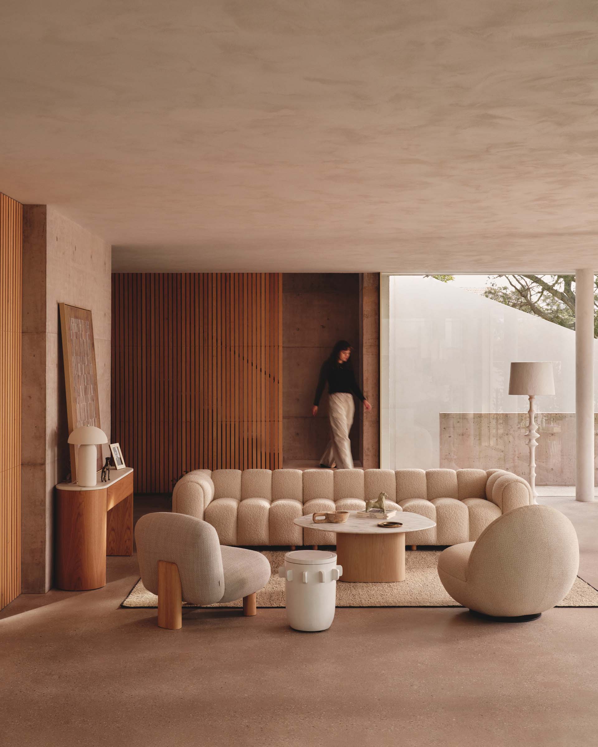 Textured weaves, sculptural forms, and grounded tones come together in pieces that invite calm and connection. With gentle curves, natural materials, and an earthy palette, this collection brings warmth and quiet sophistication to any space — whether you're creating a relaxed living area or a refined modern retreat.