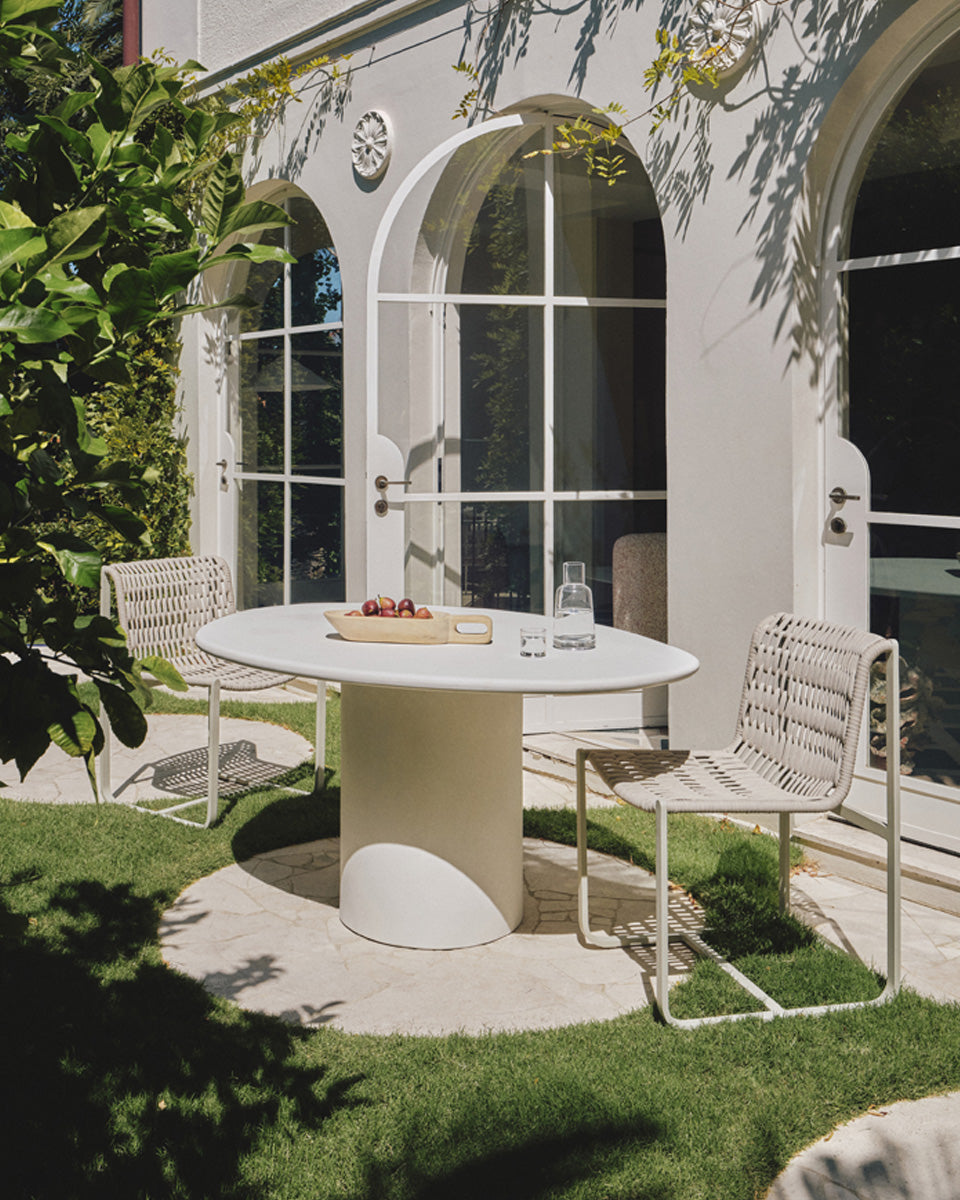 Our outdoor furniture speaks to the rhythms of Australian life. Sculptural lounge settings suit larger gardens, while slimline coffee tables work beautifully in smaller patios and balconies. Dining pieces are designed to host with ease, without feeling oversized or imposing.