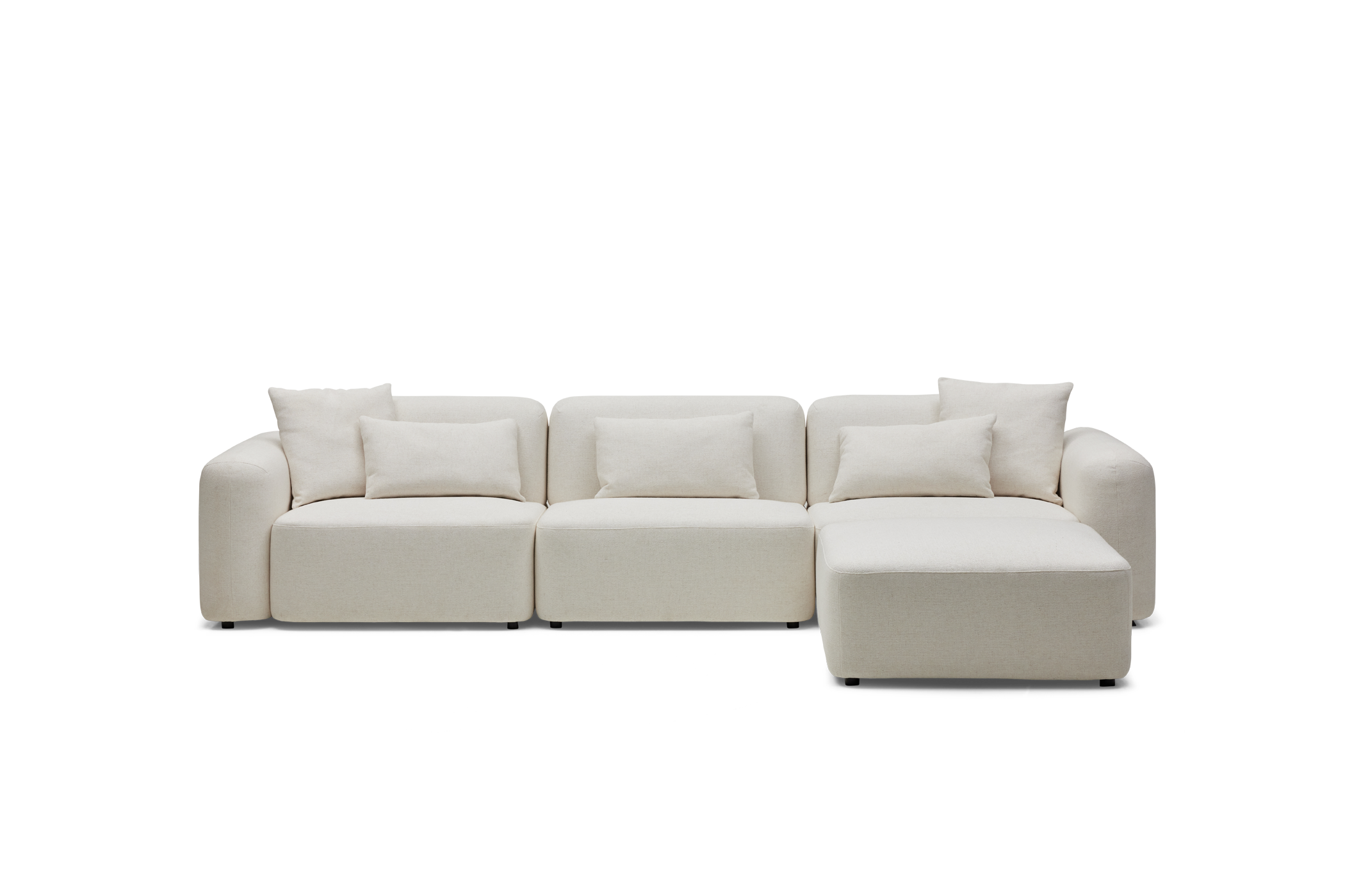 This collection is a modern take on relaxed luxury, with soft, generous cushioning and plush upholstery. Designed for effortless care, it features fully removable covers and a range of modular configurations, including single-seat, 2-seater, 3-seater and more. With an adaptable ottoman that can be used as a left or right chaise.