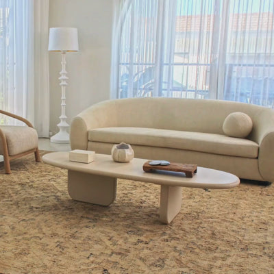 The Alter Coffee Table boasts a flawless matte lacquer finish in a natural hue that seamlessly blends into any space. A testament to organic elegance, its oval shaped table top is supported by unique paddle-style perpendicular legs, exuding a sense of grace & modern sophistication. Finished in a StoneSkin texture that mimics the depth of natural stone or clay, the table is coated in a carefully applied epoxy resin. This two-part material—resin and hardener—forms a strong chemical bond that creates a durable, tactile surface resistant to moisture, abrasion, and everyday wear. It’s a sensory experience that elevates your space while blending seamlessly into your home’s aesthetic.