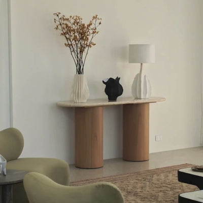 Experience the perfect harmony of craftsmanship, natural materials, and contemporary design with the striking Basma Console table. Its smooth marble top and cylindrical timber legs create a sculptural aesthetic with rounded edges that exude architectural flair. The thoughtful design balances textural contrast with timeless elegance, making it a versatile statement piece for any entryway, hall, or living space. Masterfully crafted for durability and functionality, the Basma Console offers a refined blend of modern style and enduring appeal.