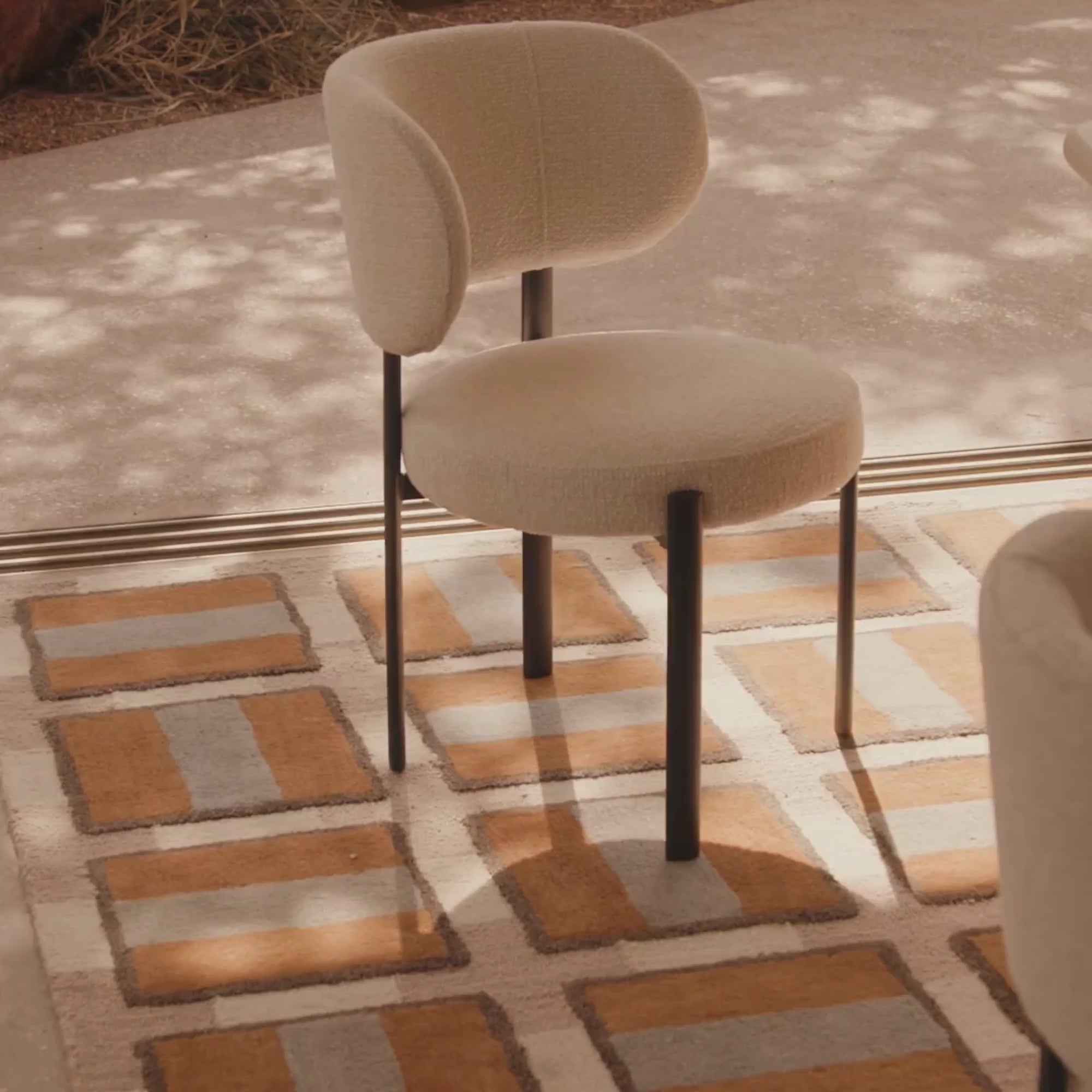 The Caden Dining Chair blends beauty and comfort, making it a perfect choice for any contemporary dining space. Its broad, curved backrest and well-cushioned seat provide exceptional support, while the textured weave upholstery in light beige adds warmth and sophistication. The sleek, black metal frame creates a striking contrast, enhancing its modern appeal. With its minimalist design, the Caden effortlessly complements both new and existing dining tables.