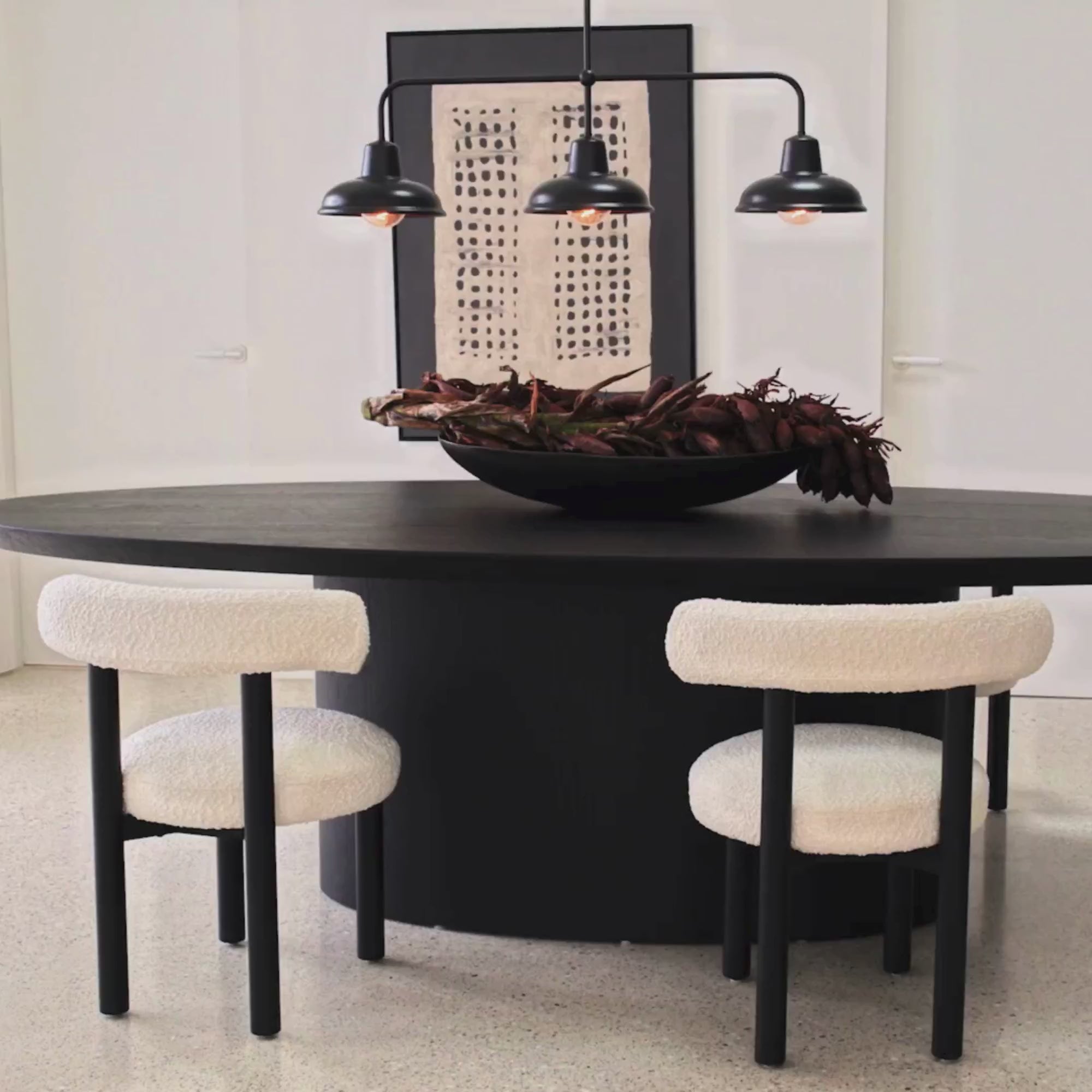 The Rossi Dining Chair in ivory is a modern dining chair, perfect for your contemporary dining space. Featuring a black wooden frame, adjustable feet, curved padded backrest & seat, upholstered in luxe ivory boucle, the Rossi is both comfortable & stylish. A beautiful dining chair to compliment your existing or new dining table. This sturdy chair would also work perfectly paired with a home desk.