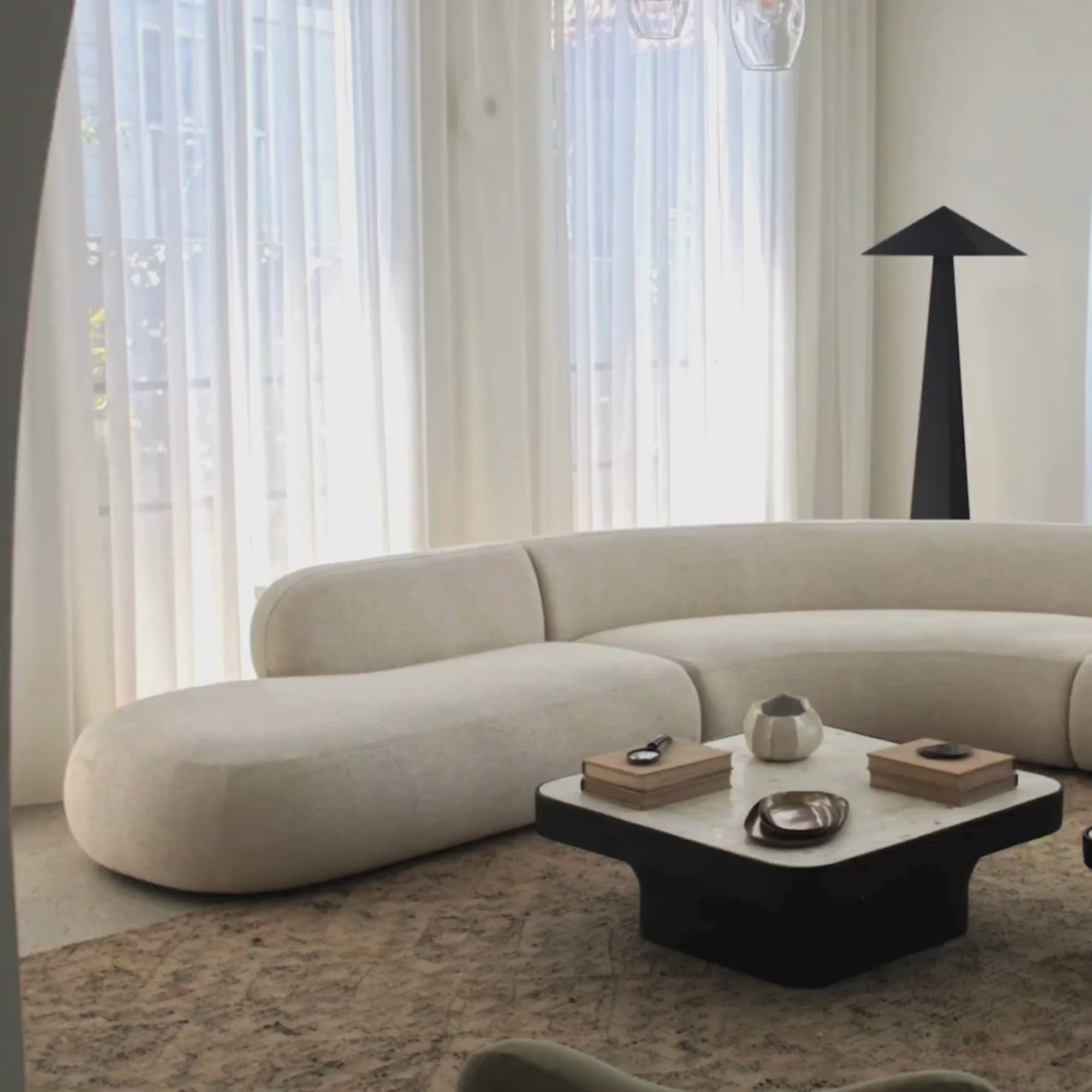 The Soho Modular Sofa is our biggest sofa yet! A sleek, modern marvel designed for both style and adaptability. This oversized sofa spans 4 meters in length but thanks to its simple joining system & connectors can be configured into two separate sofas, one straight & one curved. Its relaxed, curvaceous shape with bold, eye-catching design adds a touch of modern elegance to any space. Fully upholstered in a luxurious wool cotton blend, it complements both modern and traditional interiors effortlessly. With a medium-firm loungability level, this sofa is perfect for dividing large or open-plan living areas, providing both comfort and style for lounging and living. Experience the ultimate in style, versatility, & relaxation with the Soho Modular Sofa.