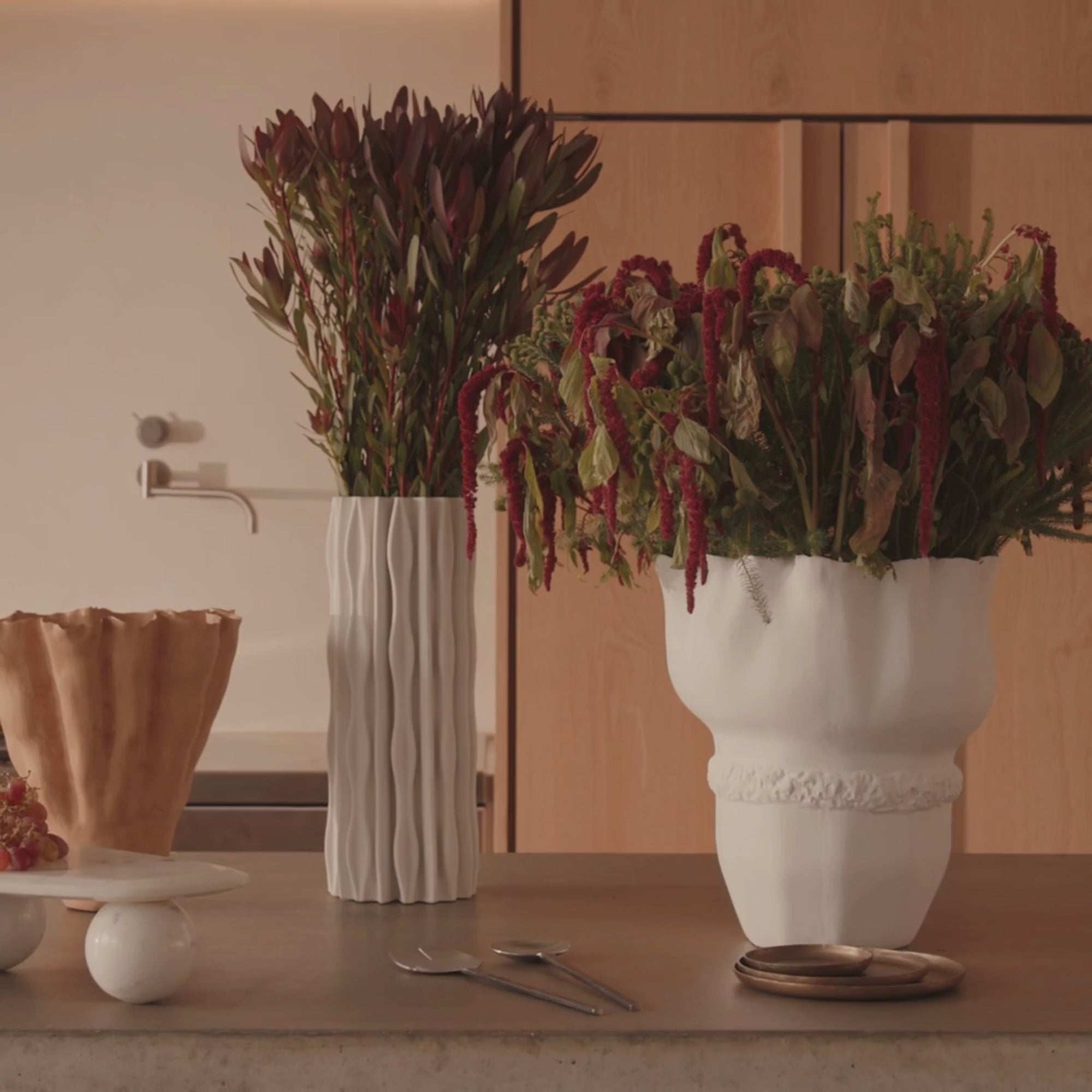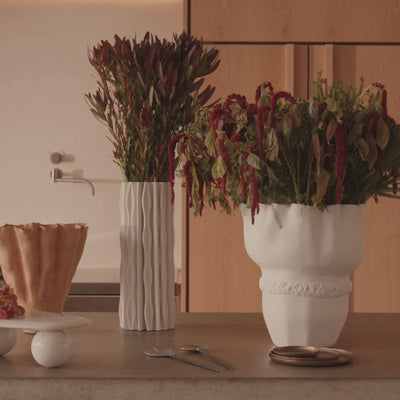 The Toro Vase White is 3D-printed using 100% ceramic. Each piece meticulously crafted blending artistry with functionality. Designed by Horgans, Toro is not only visually striking but evokes the feeling of a gallery piece. Handfinished and painted, each piece will have natural variations across colour, size, and finish. Whilst the interior of this item features a waterproof lining, due to the handmade craftsmanship & nature of the materials, complete waterproofing cannot be guaranteed. Please note, the waterproofing treatment extends only to approximately one-third of the interior depth, so do not overfill. If using with water, we recommend testing thoroughly and monitoring over time to ensure optimal performance.