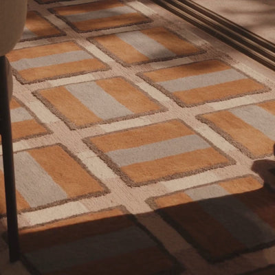 From India, the Totem is a hand-woven rug, crafted from 100% wool with meticulous attention to detail. Featuring a design of strong squares of dark amber gold & blue set against a chequer board of soft beige & ivory squares, this is very much a statement piece to bring a bold and high-end feel to any room. The natural materials speak to its artisanal quality and enduring beauty. Durable & easy to maintain, the Totem Rug will be a standout piece wherever used & cherished for many years to come. Due the hand-made nature of these rugs, allow for a small size variance of up to 5cm in the size, each piece unique.
